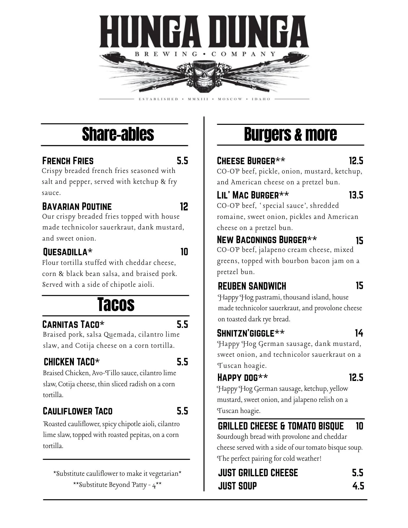 Pitcher - $20 Pint - $8 Taster - $4